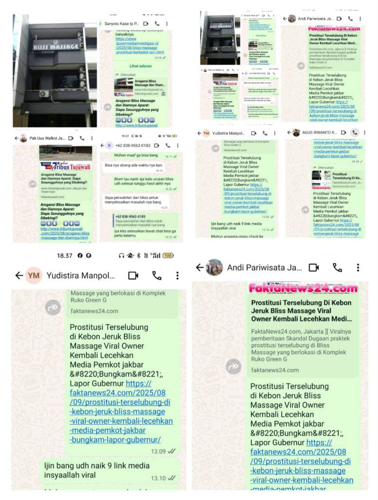 SidakCepatNews.com, Jakarta ][ Di wilayah Kebon Jeruk Kedoya Utara 2 Minggu ini di hebohkan dengan Viralnya lokasi protitusi terselubung berkedok massage. Menjadi Pertanyaan besar di masyarakat Viralnya pemberitaan Dugaan praktek prostitusi terselubung di Bliss Massage yang berlokasi di Komplek Ruko Green Garden Blok Z RT 14 RW 08 Kelurahan Kedoya Utara, Kecamatan Kebon Jeruk, Jakarta Barat, Setelah beberapa kali viral di media online, tempat ini masih beroperasi dengan santai seolah tak tersentuh hukum. Parenkraf dan Satpol PP jakarta barat “Mandul” rabu 13 Agustus 25