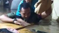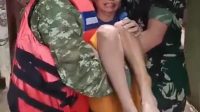 Babinsa Jatinegara Sigap Evakuasi Warga Penderita Stroke di Tengah Banjir Kampung Melayu.
