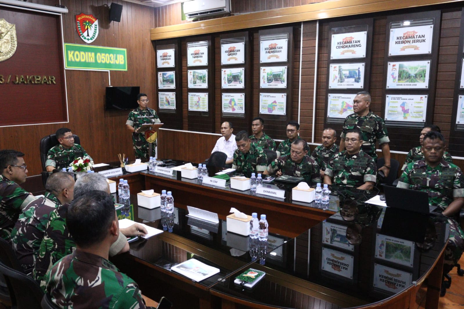 Kegiatan dilanjutkan dengan paparan dari Dandim 0503/JB di ruang data. Dalam paparannya, Dandim memaparkan situasi dan kondisi wilayah, serta berbagai program kerja dan capaian Kodim 0503/JB dalam menjaga stabilitas keamanan dan ketertiban masyarakat di wilayah Jakarta Barat.