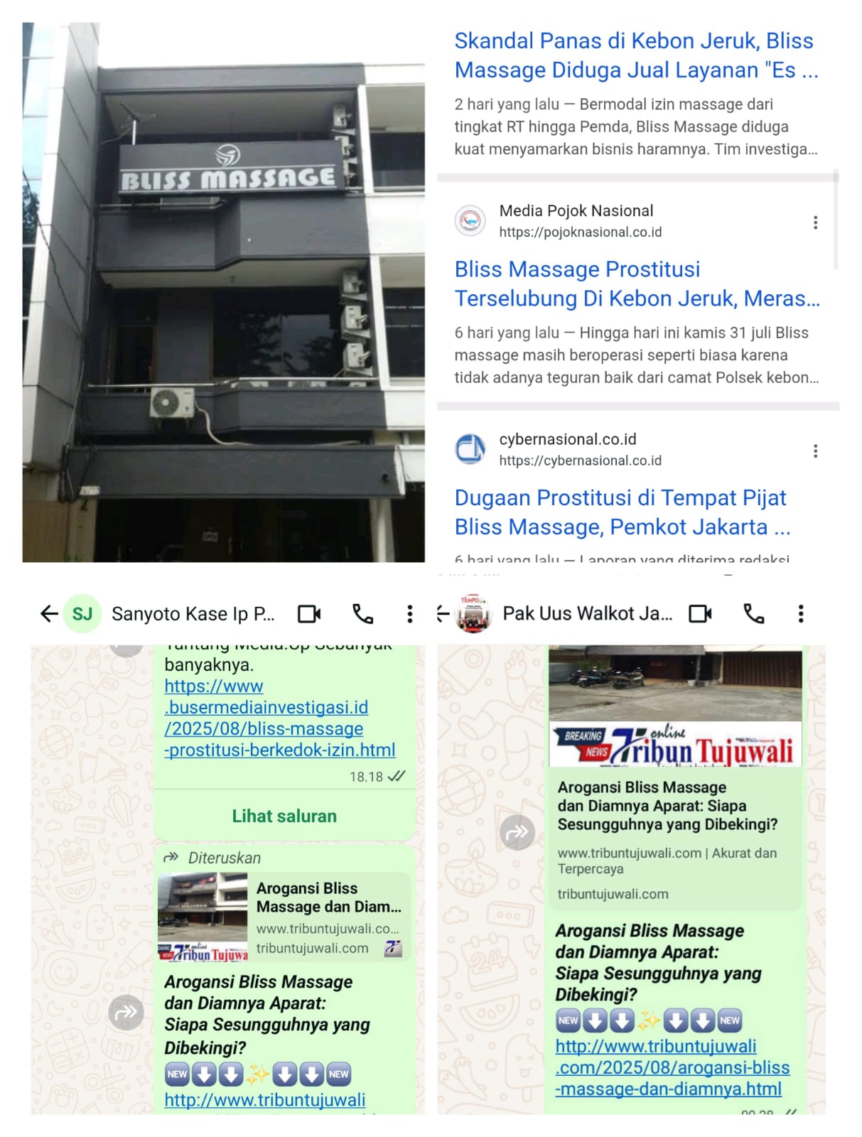 ” Terkesan terjadi pembiaran karena adanya koordinasi dari owner bliss massage.”